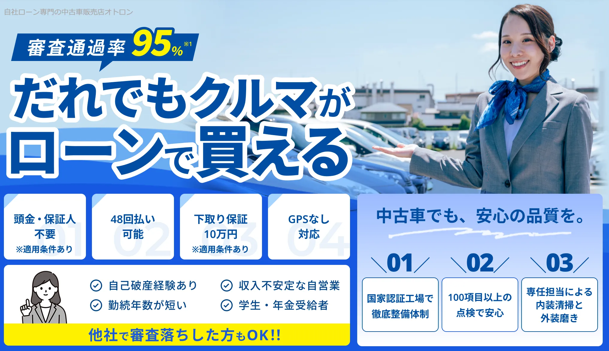 「オトロンは怪しいのでは?」「やばい口コミはある?」と気になっている方も多いのではないでしょうか。 実際に調べてみると、オトロンは自社ローン専門の中古車販売店で、審査通過率95%以上・累計販売台数33,000台以上という実績があります。頭金不要や保証付き車両、全国対応といった特徴もあり、一般的なオートローンが通らなかった方から注目されているサービスです。 ただし、どれだけ実績があるサービスでも、実際に利用する前には良い評判だけでなく、注意点まで確認しておきたいところです。 オトロンの口コミ・評判 怪しい? ...