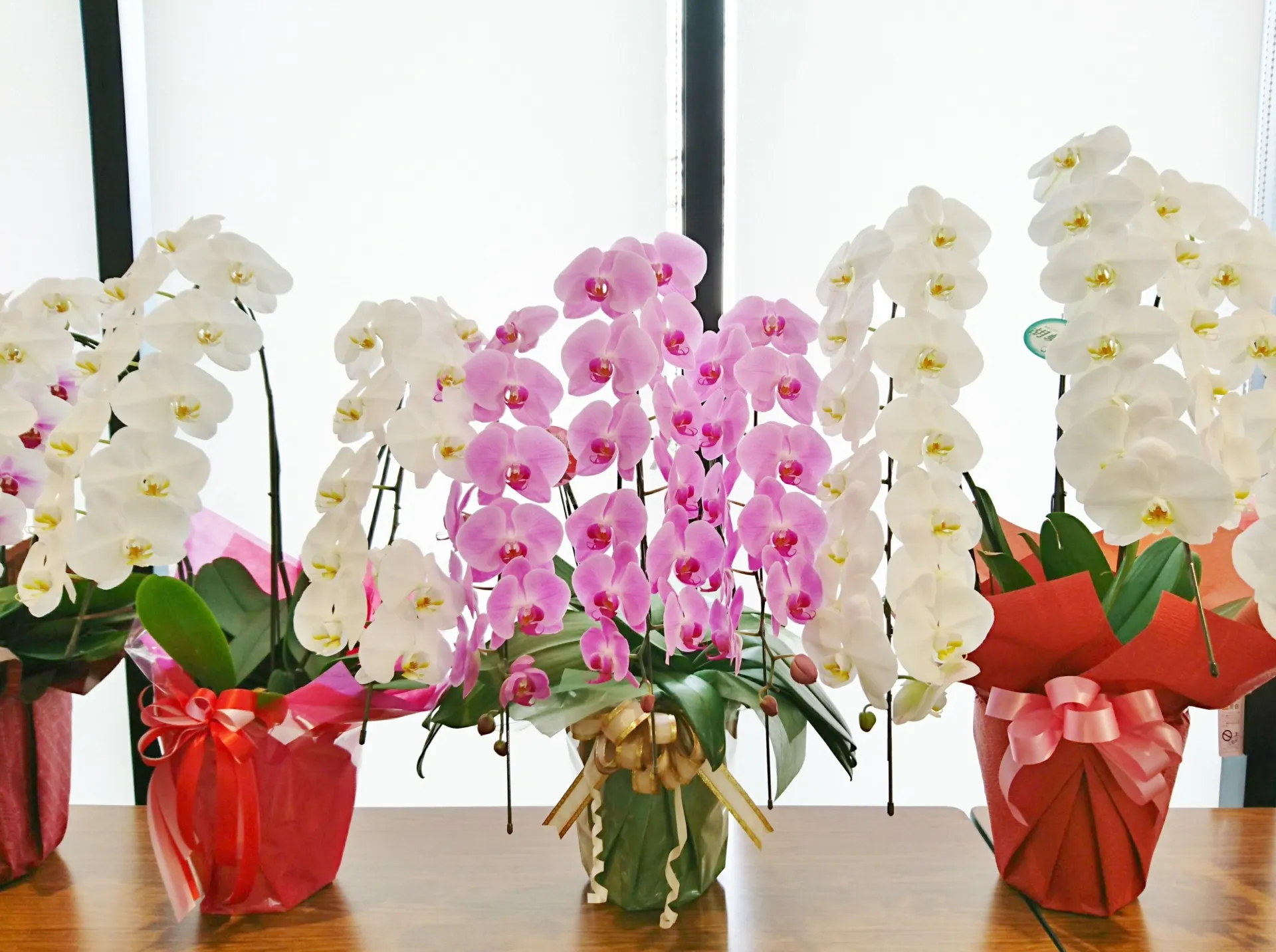 胡蝶蘭はさまざまなお祝いへの贈り物の候補として選ばれることの多い花の一つです。お悔み、企業や個人向けの開店祝い、開業祝い、あるいは移転祝いなどのお祝いに際してお送りする胡蝶蘭として適しています。