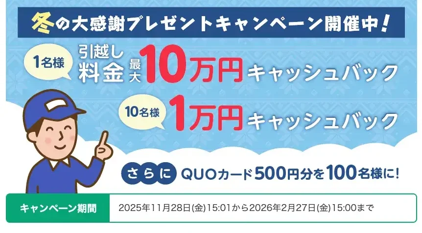 引越しは大きな出費になりがちですが、キャンペーンを活用すれば実質負担を抑えられる可能性があります。