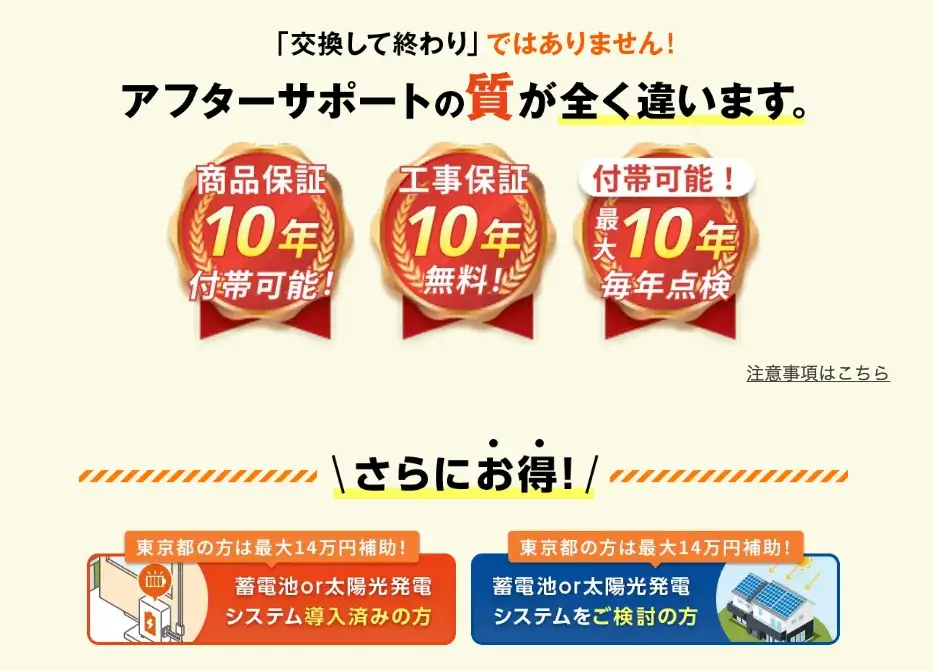 交換パラダイスは、低価格・長期保証・施工後の定期点検といったサポート体制を備えた住宅設備交換サービスです。