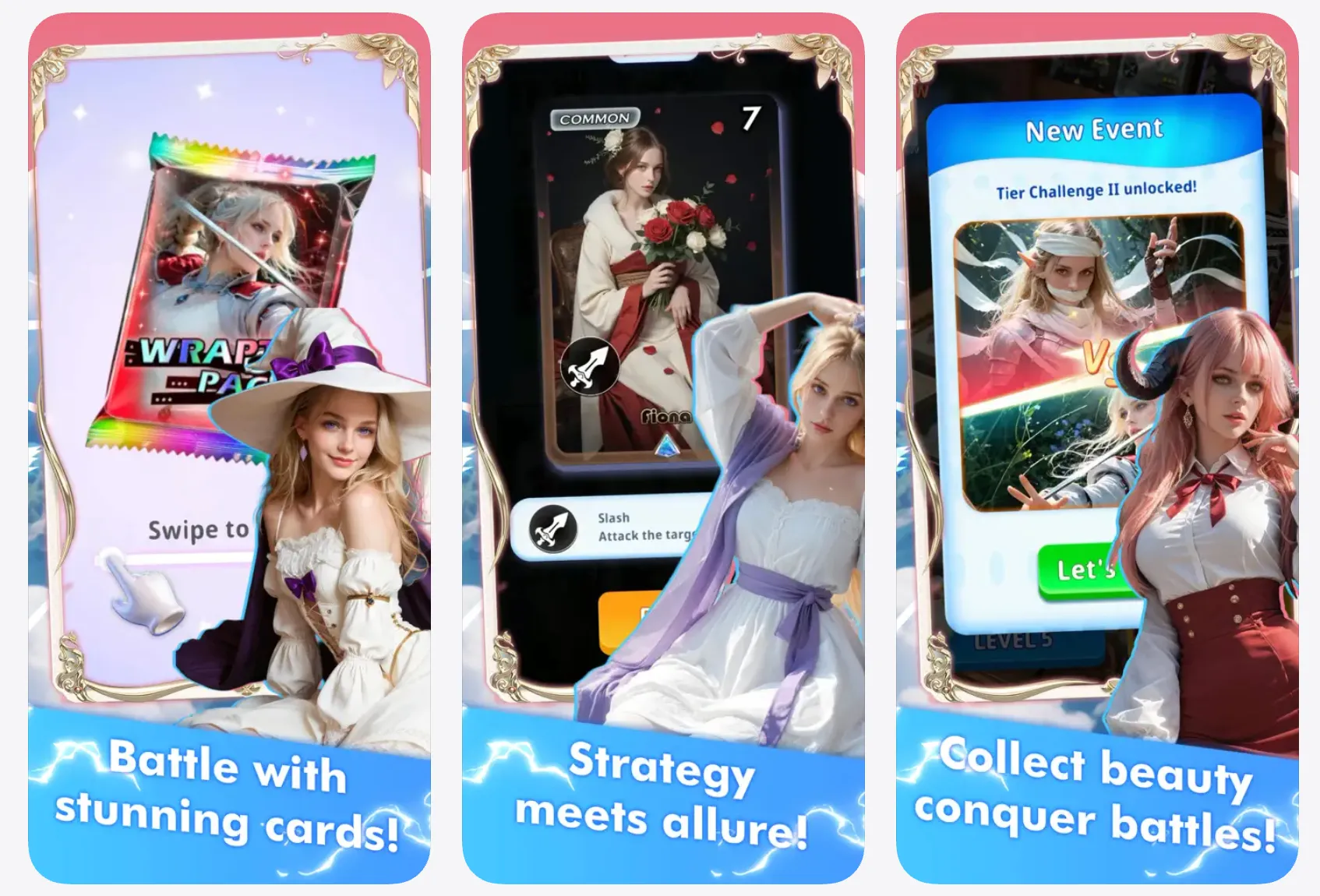 今までの、セクシーな女性を起用した似たようなものばかりだったアプリから一新して、カードバトルシステムのこのアプリは、非常に面白いです。まだまだ作り込み要素が沢山あると思います。デッキの数を増やせたり、重複したカードは強化に使えたりコインや、ダイヤに変換できたり、ランク戦以外にも、フリー対戦で手軽にコインを稼げたりなど、勝利すれば自動的にランクが上がっていきパックを引かないと勝てなくなってくる割には報酬が渋いかと。新しいパックが出る度に高くなっていくのに、それまでのパックの入手手段がダイヤでの購入のみにしてしまうのが残念。それまでのパックもコインで引けるようにして欲しいです。あと、同じ会社の他のアプリの方がセクシーな女性ばかりなので、このアプリももっとセクシーな女性にしてほしいです。