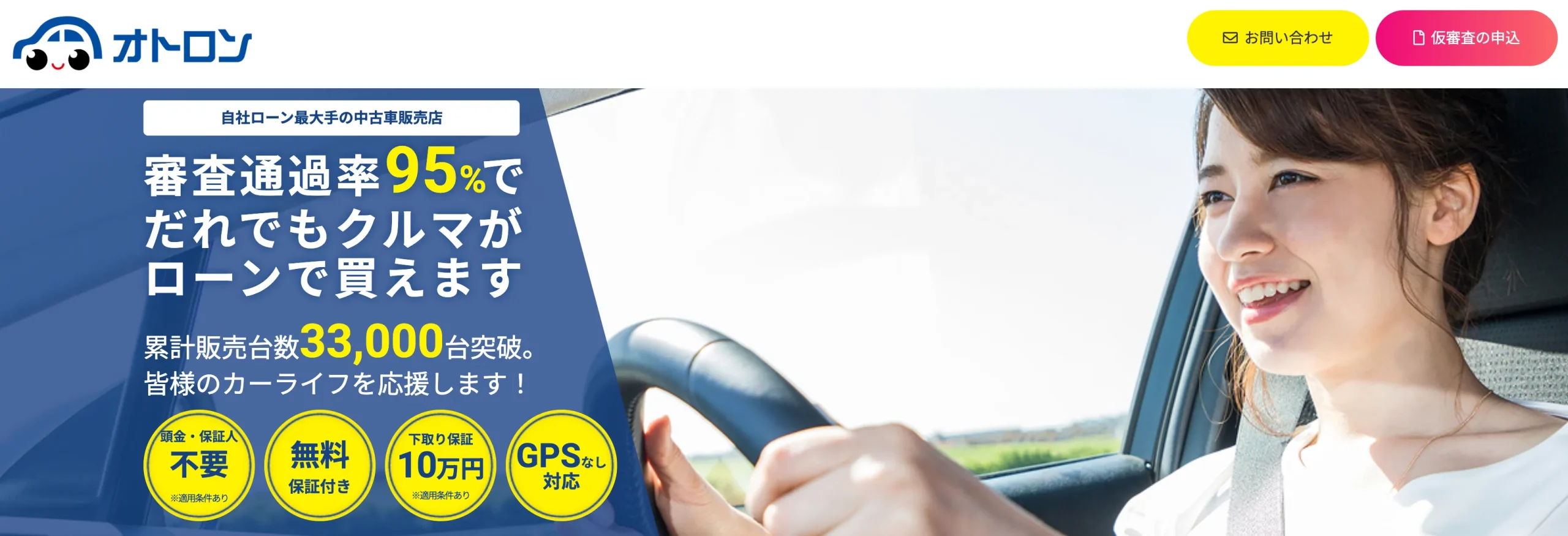 実際に調べてみると、オトロンは自社ローン専門の中古車販売店で、審査通過率95%以上・累計販売台数33,000台以上という実績があります。頭金不要や保証付き車両、全国対応といった特徴もあり、一般的なオートローンが通らなかった方から注目されているサービスです。