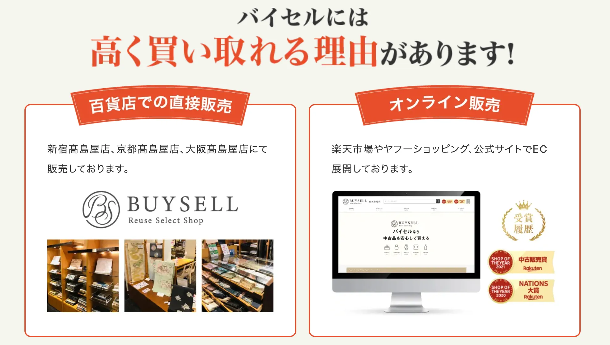 | 特徴 | 独自販路(百貨店・EC)で高価買取が可能 |