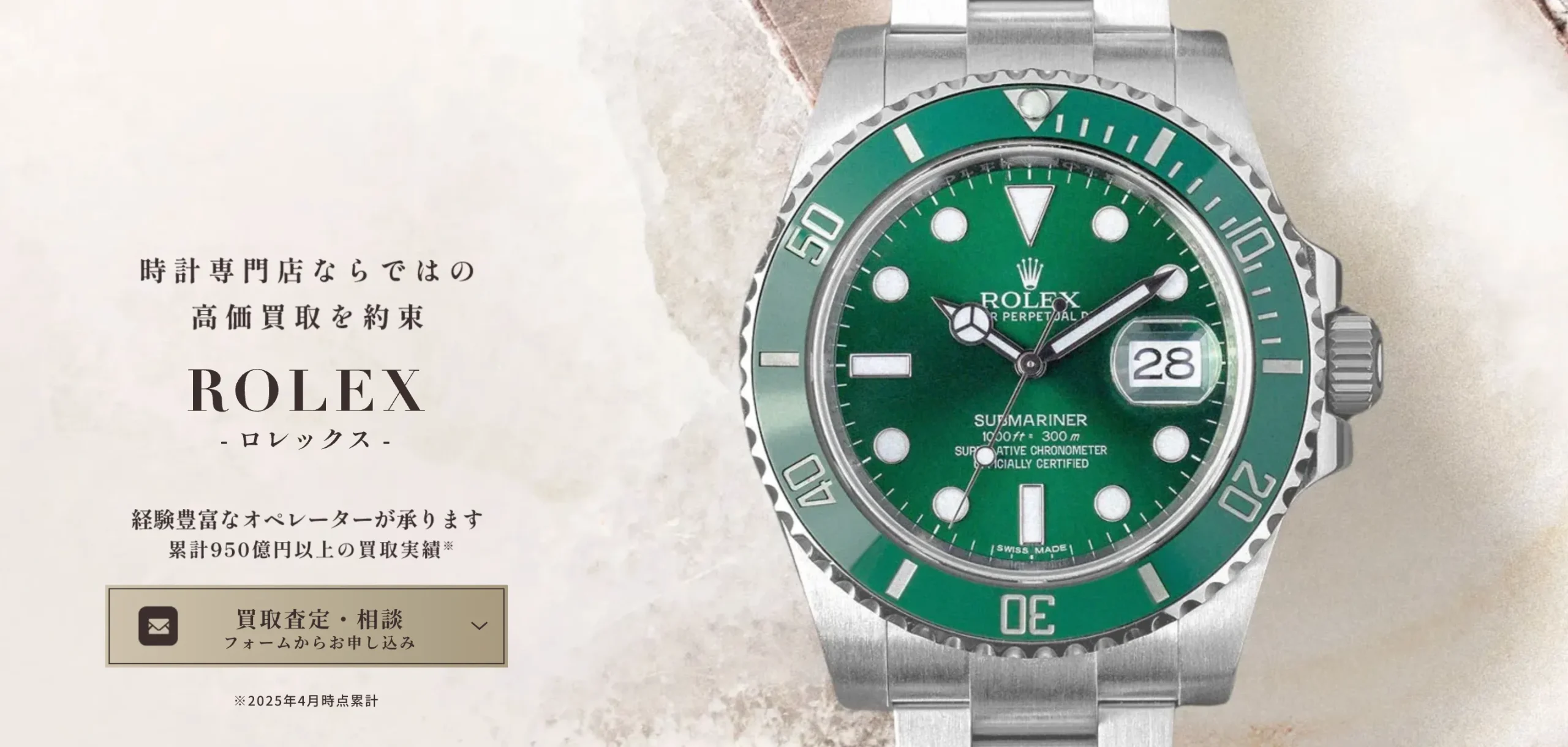 デイトナやサブマリーナーなど人気モデルはもちろん、アンティークや故障品まで幅広く対応しており、「状態が悪いから売れないかも…」という方でも査定してもらえるのが特徴です。