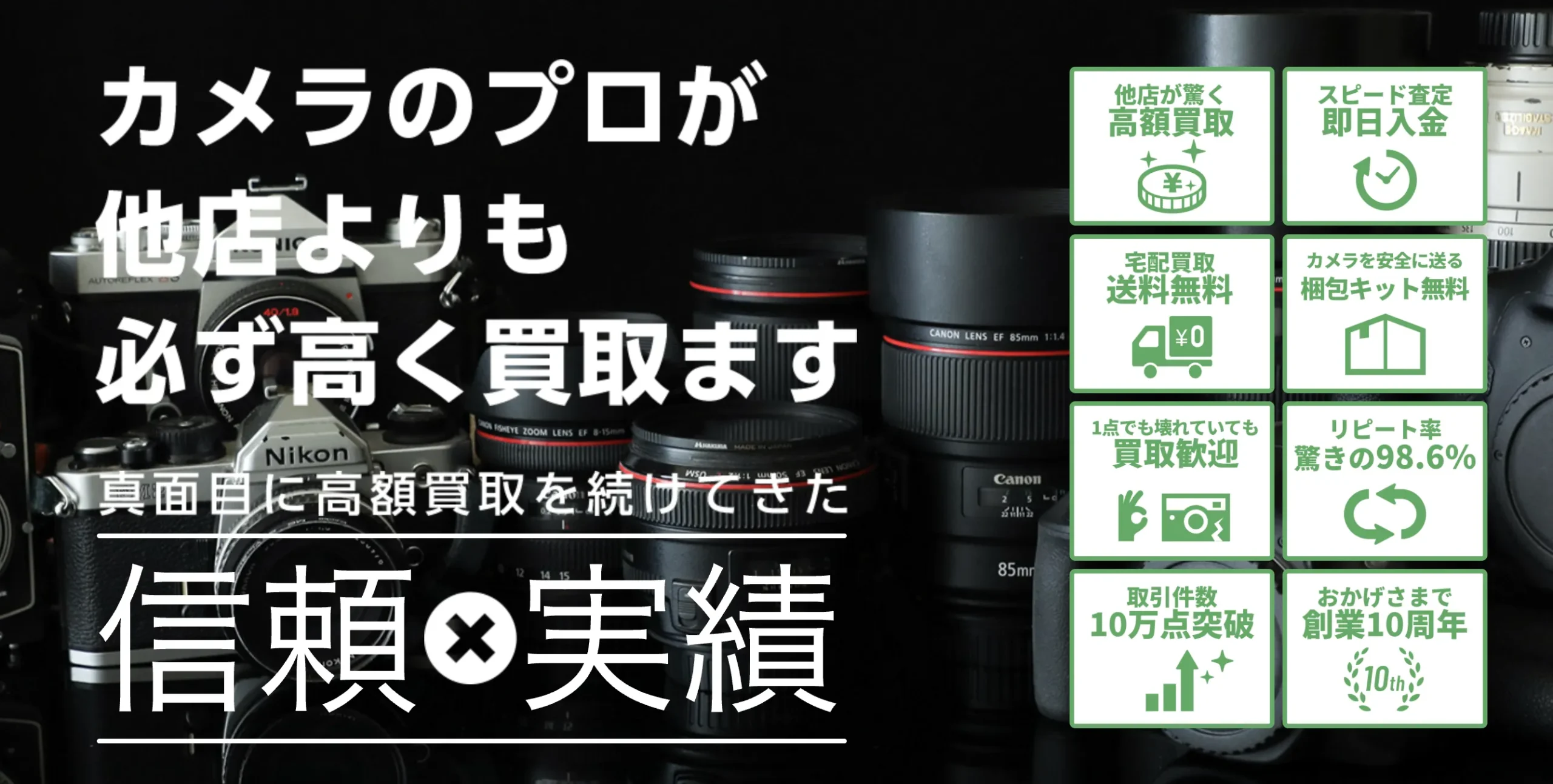 トレンドカメラは、カメラ・レンズを専門に扱う買取サービスで、創業10年以上・累計取引10万点以上の実績を持つ専門店です。