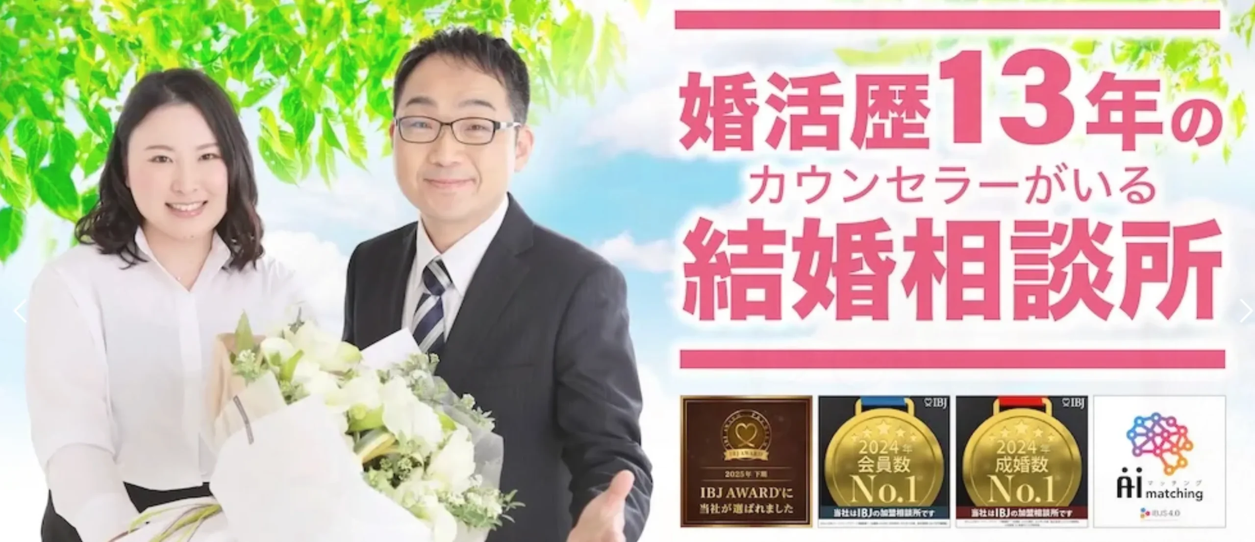 最大の特徴は、代表自身が13年間の婚活を経験している点にあり、机上の理論ではなく実体験に基づいたリアルなアドバイスを受けられます。また、IBJ Awardプレミアム部門を連続受賞し、さらにマル適マーク(第三者認証)を取得していることから、信頼性の高い相談所として評価されています。